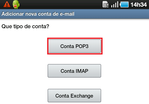 Configurando uma conta POP3, utilize a porta 995 e o tipo de segurança SSL. Depois clique em Próximo
